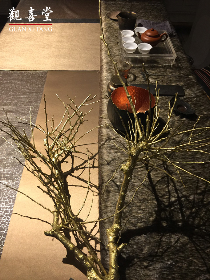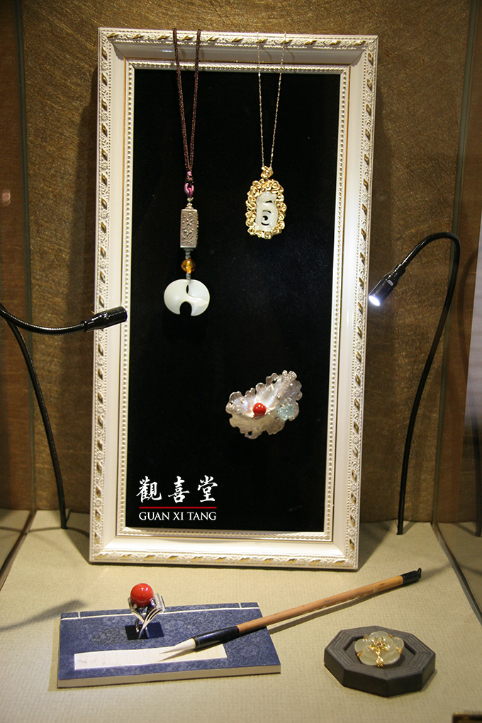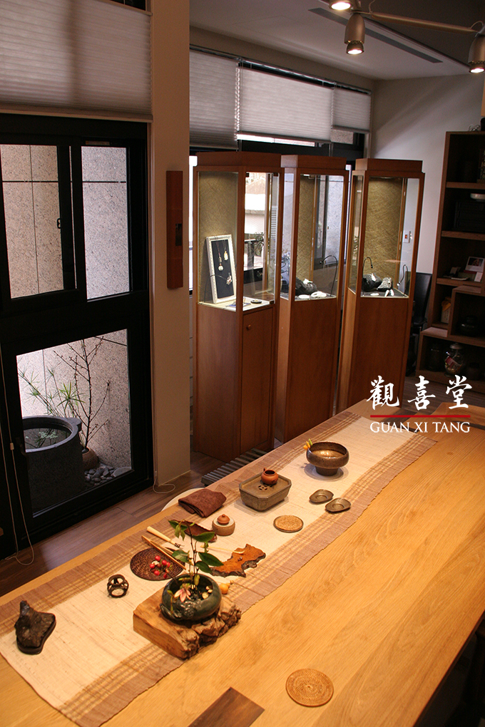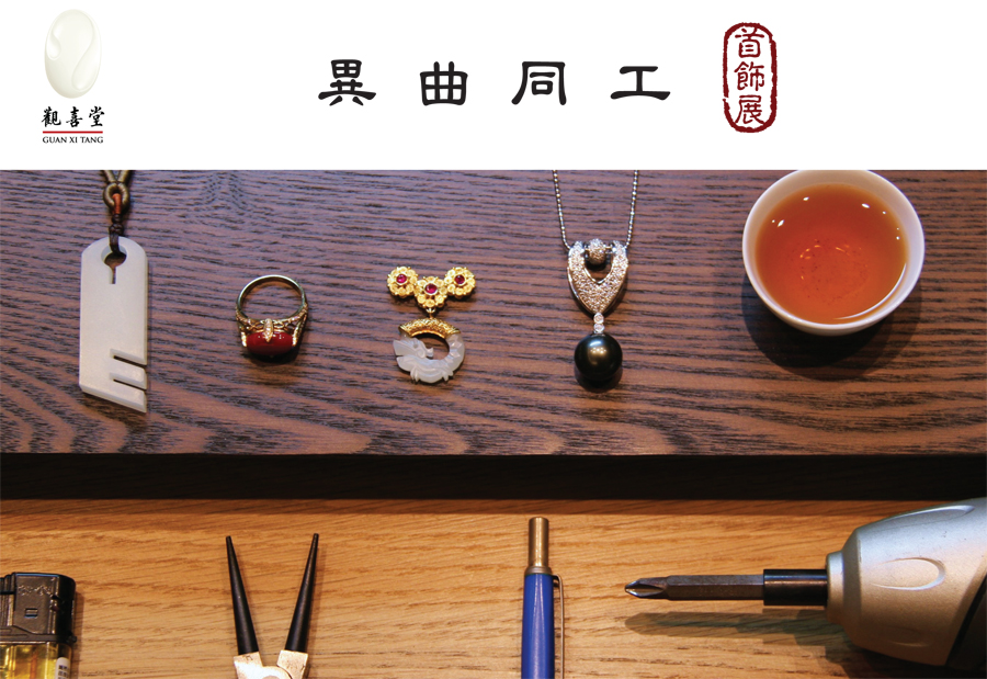 觀喜堂於2014年搬遷至台北市建國北路一段65號3樓,故於2015年春三月,舉辦《春臨新居茶會》暨《異曲同工首飾展》。常年遊藝於白玉領域的觀喜堂,在羊年春日之異曲同工首飾展,首度邀集四方藝術工作者跨界與我們合作,以參與茶席結合珠寶展示之形式呈現。