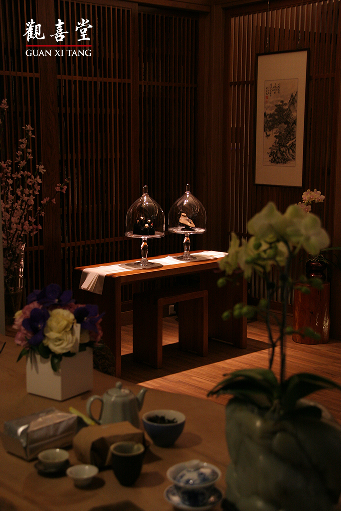 數十年來,觀喜堂致力提升和闐子兒玉的精雕細琢,是目前最專業的和闐子兒玉玉雕製作團隊。本次邀展對象有專營寶石紅珊瑚的北京彤悅軒、專長定製珠寶金鑲玉的北京融玉堂、風格獨具且海內外獲獎無數的鱒工房。特邀長年推廣台灣茶道的張宜靖老師,在觀喜堂新居展演茶藝。透過席間烹茶、喝茶、品味,多種方法,品茶賞玉,追求生命中最好的真善美精神,與您分享。