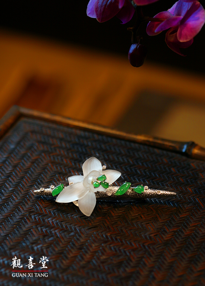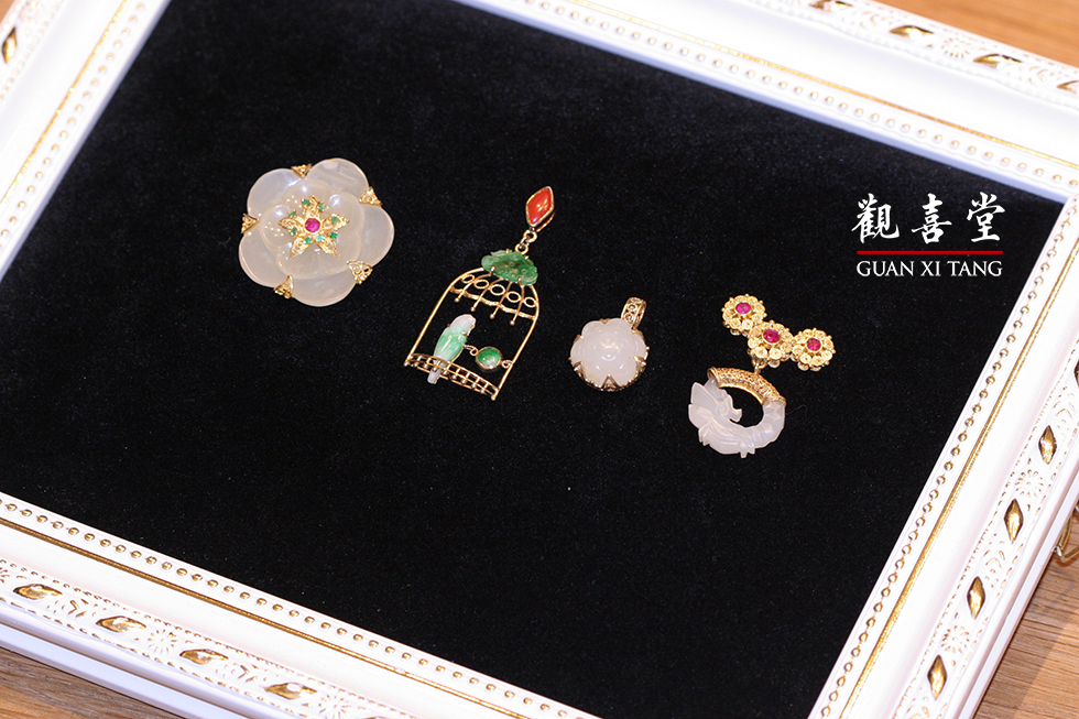 融玉堂負責人王文君女士,北京新銳珠寶設計師,擅長定制個性化高端藝術珠寶設計。部分作品結合北京花絲鑲嵌的工藝技法,與白玉結合通透呼應。金鑲玉元素多為捲草和吉祥雲紋等古典圖案搭配玉與彩寶,質感與設計感備具。作品設計風格糅合經典與創意,造型精緻獨特,極富個性。