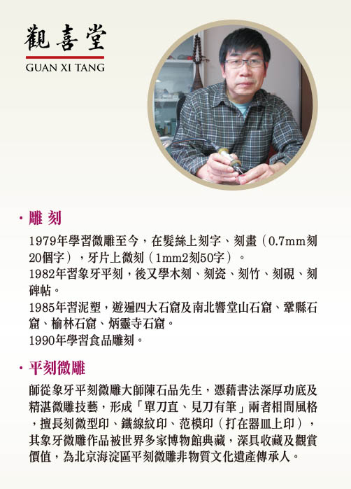 觀喜堂這次展出的玉印,除體現溫潤有神、體如凝脂、堅韌細緻的材質之美外,更可欣賞現代玉雕家匠心獨運、琢碾治玉的工藝與精巧設計的各種新造型印鈕。