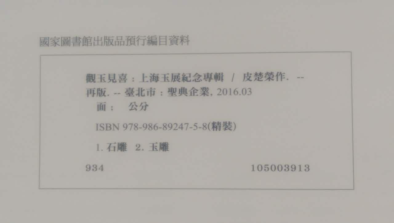在初版時,因迫於眉睫,印刷色彩上仍有許多未達盡善之處,所以這次再版,又重新校色,期望能在兼顧白玉顏色,又能表現器物的立體度以及玉澤的質感上,找出平衡點,使讀者在觀此書時,亦如玉握於手,觀玉則自喜也!