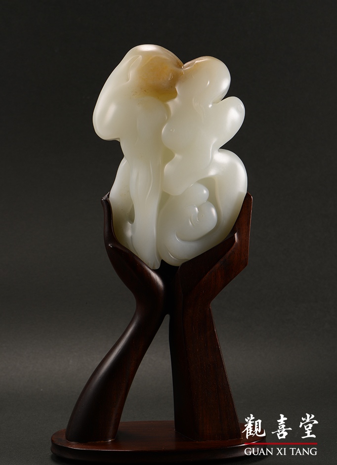 《托福》為觀喜堂於1996年開始雕琢的「現代創作系列」作品,風格渾厚樸實,圓滑曲面勾勒出一對佳偶忘情的親吻,兩人臉部帶金黃皮色暉暉,似有旭日初陽映照,見證兩人的愛情,時間便凝結在這瞬間,成為永恆。